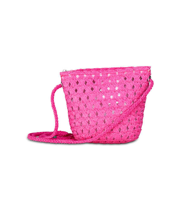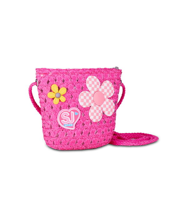 Borsina piatta con patch decorativi. Chiusura con zip.