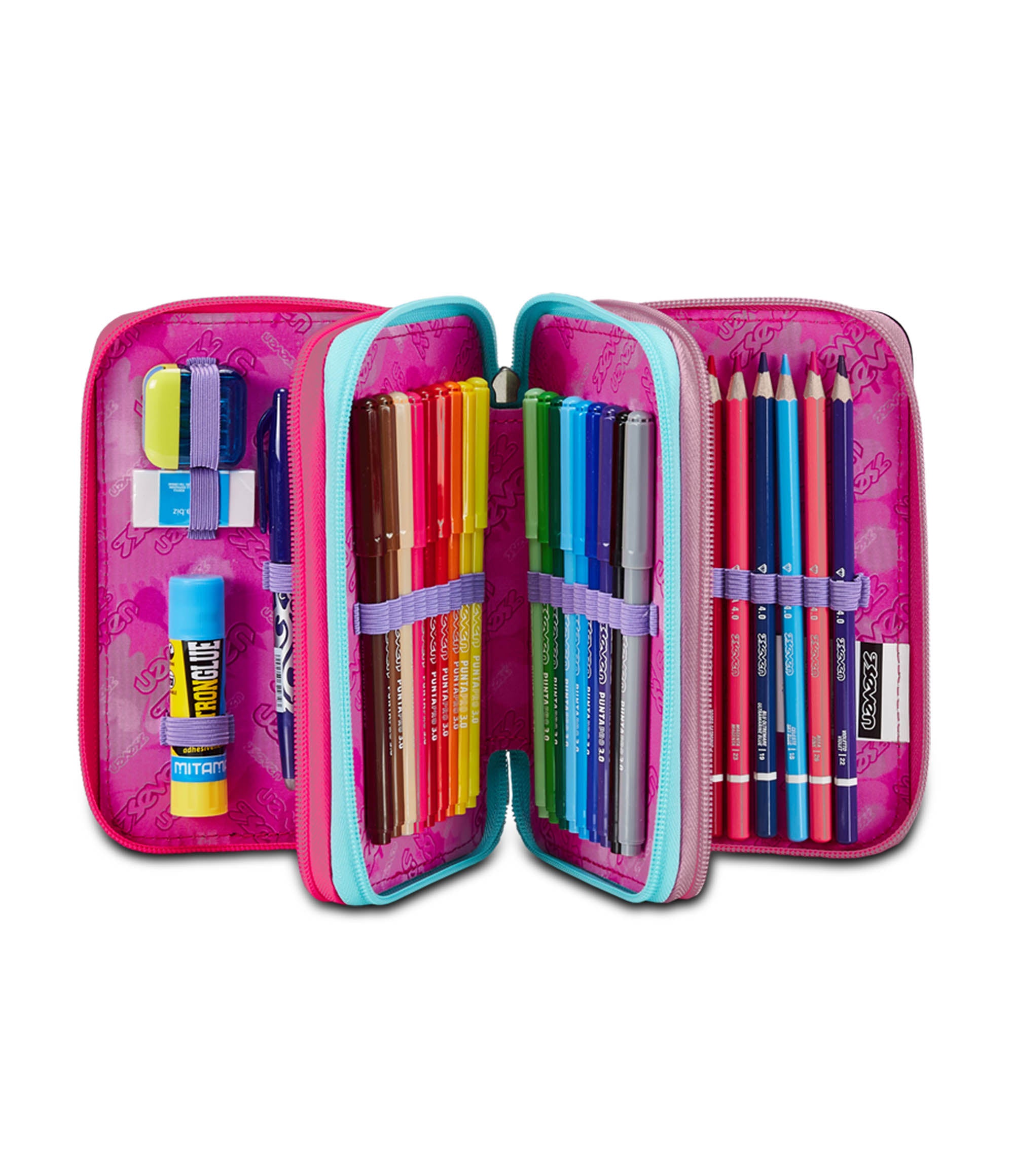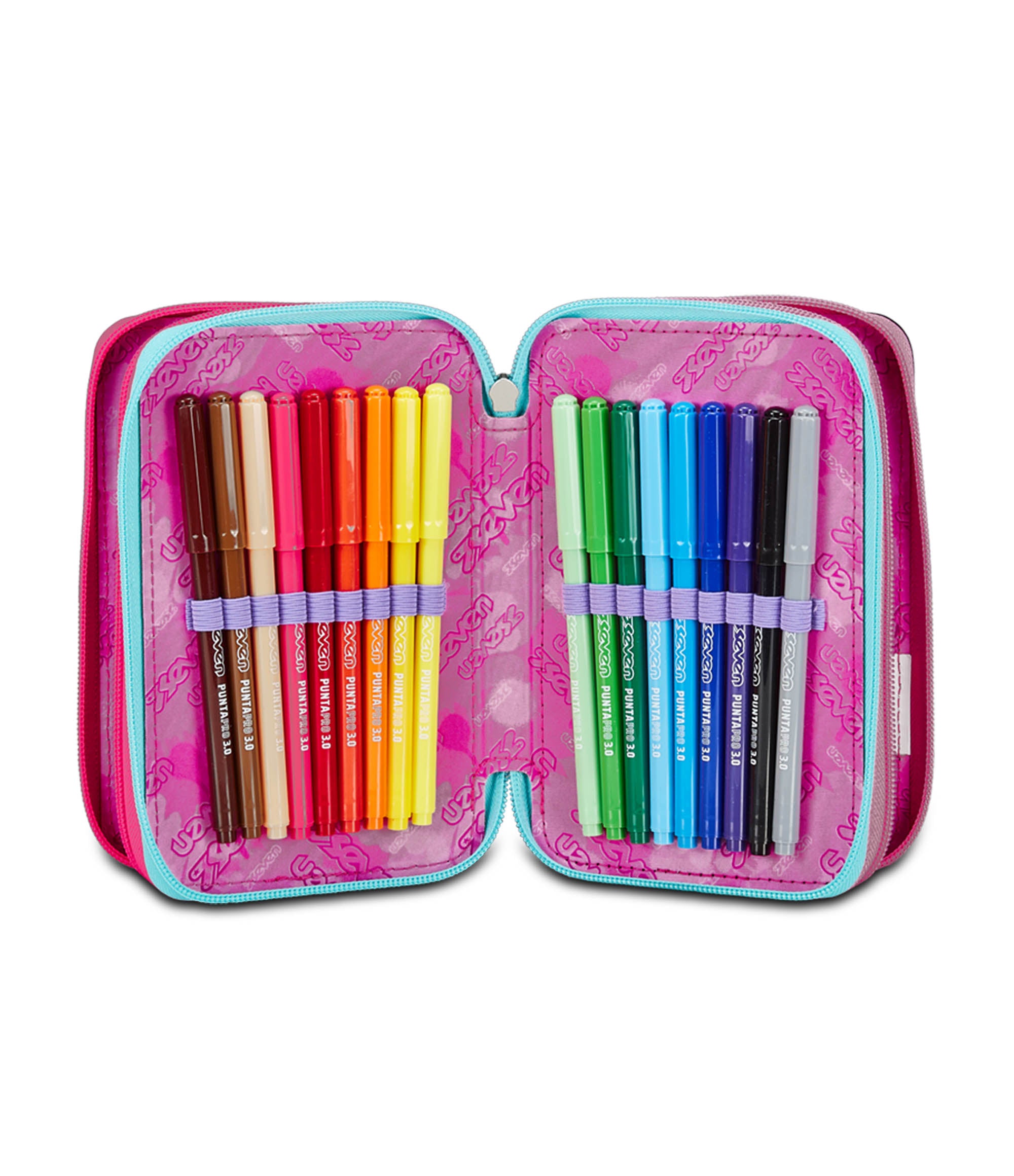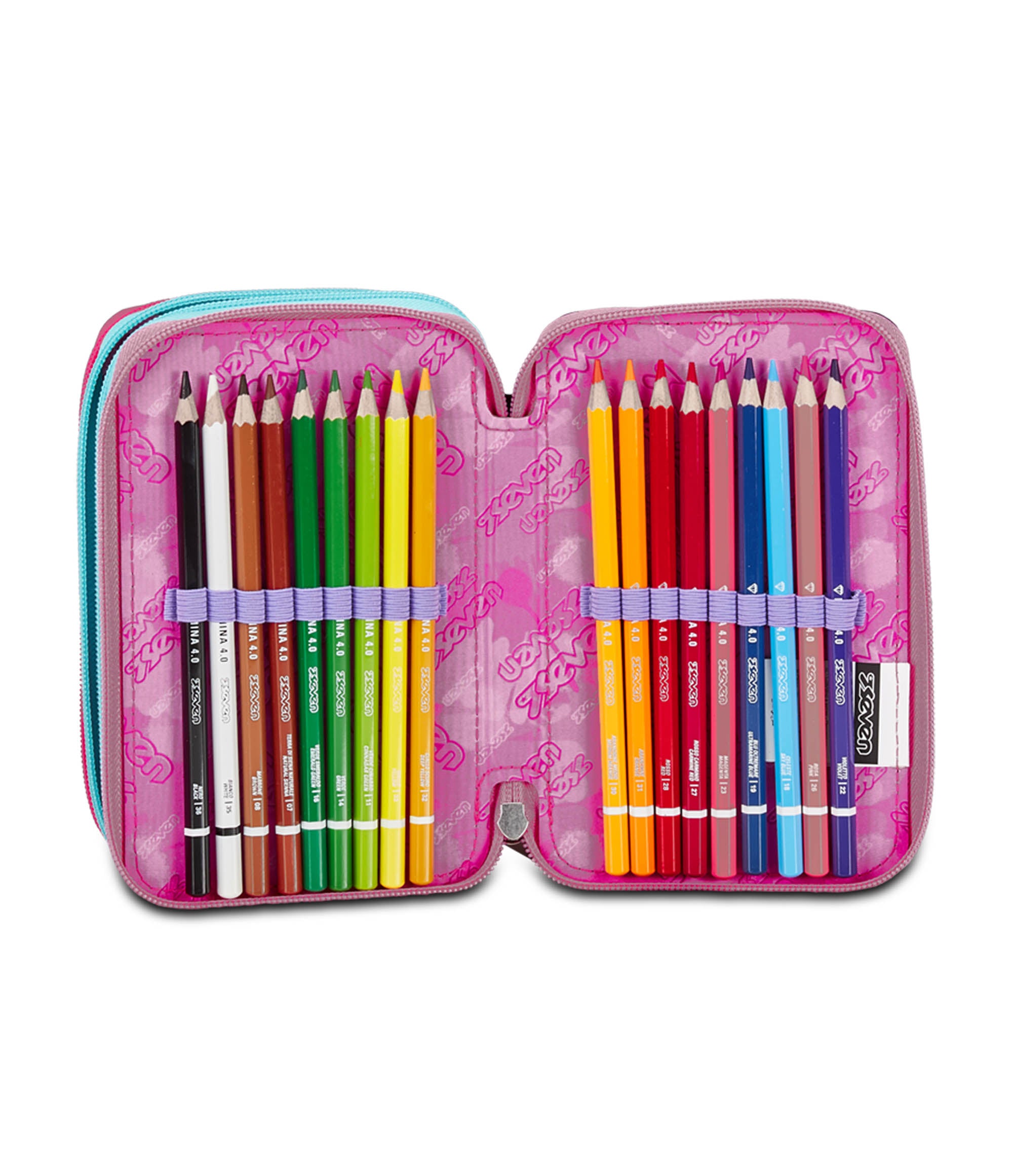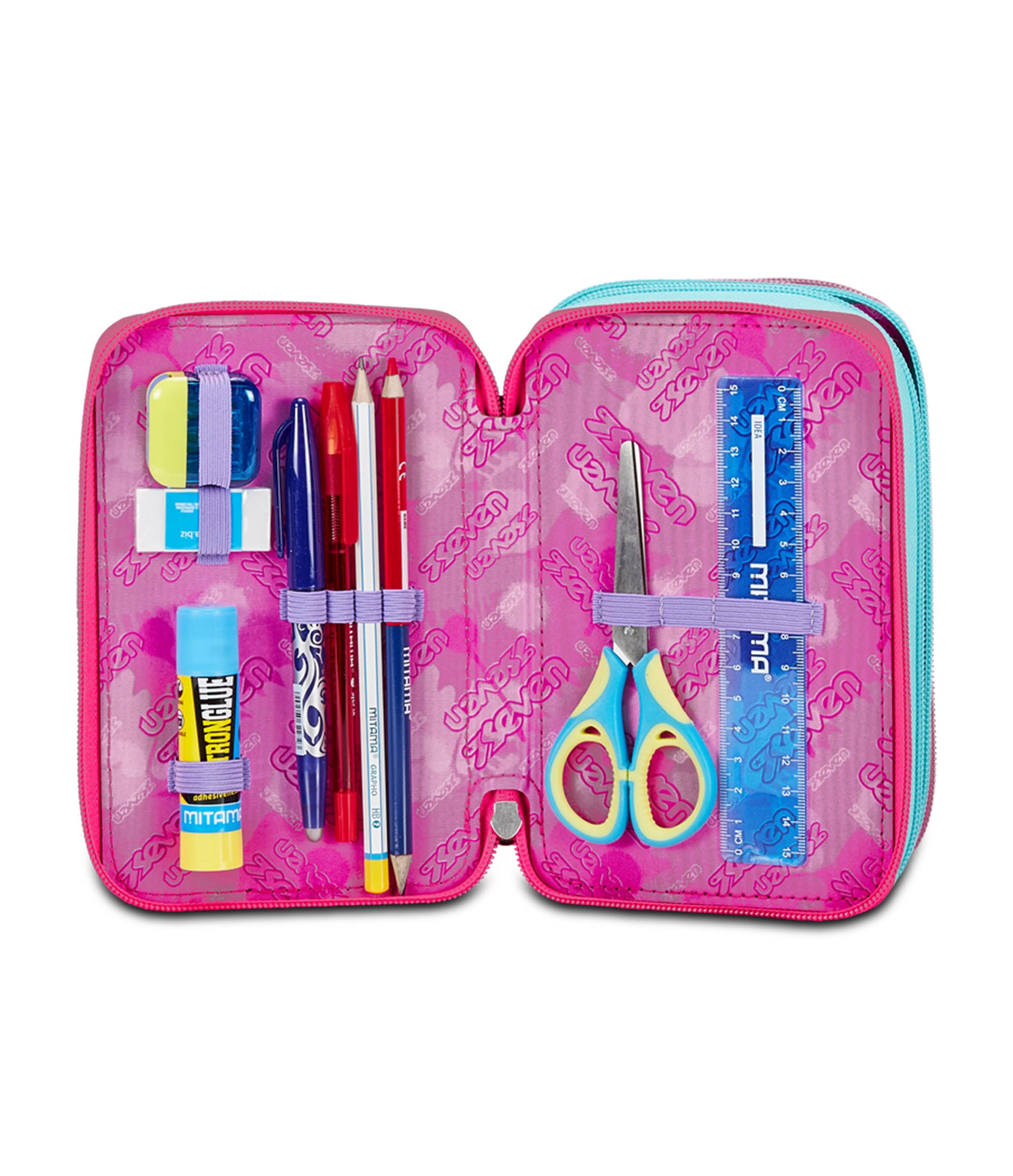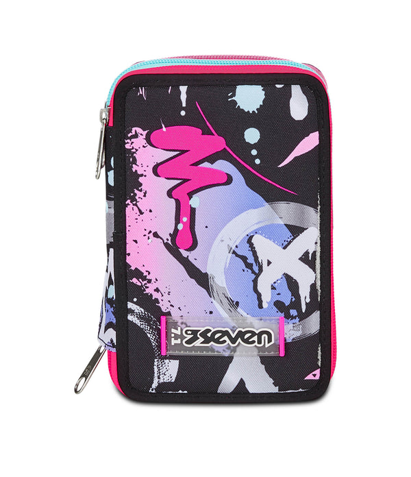 Questo astuccio Seven 3 zip ha tre scomparti in cui troverai tutto il materiale necessario per la tua giornata di scuola. A te non resta altro che abbinarlo a uno zaino o trolley Seven.