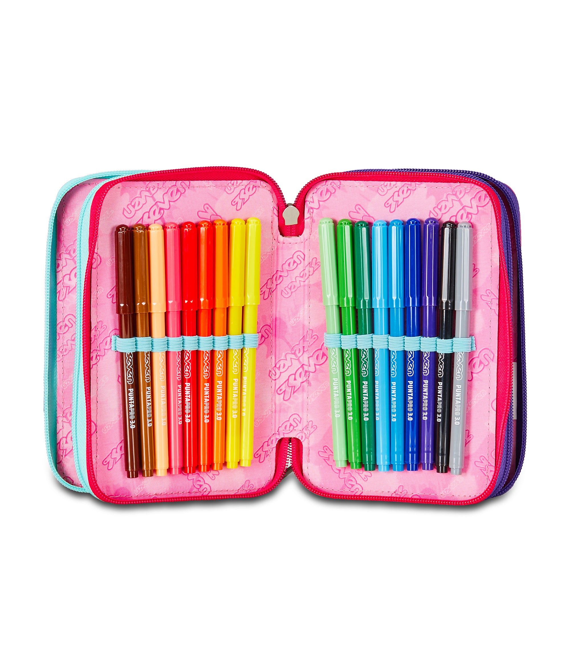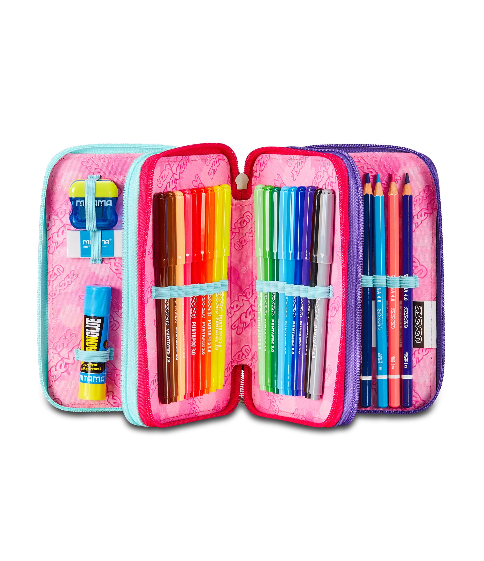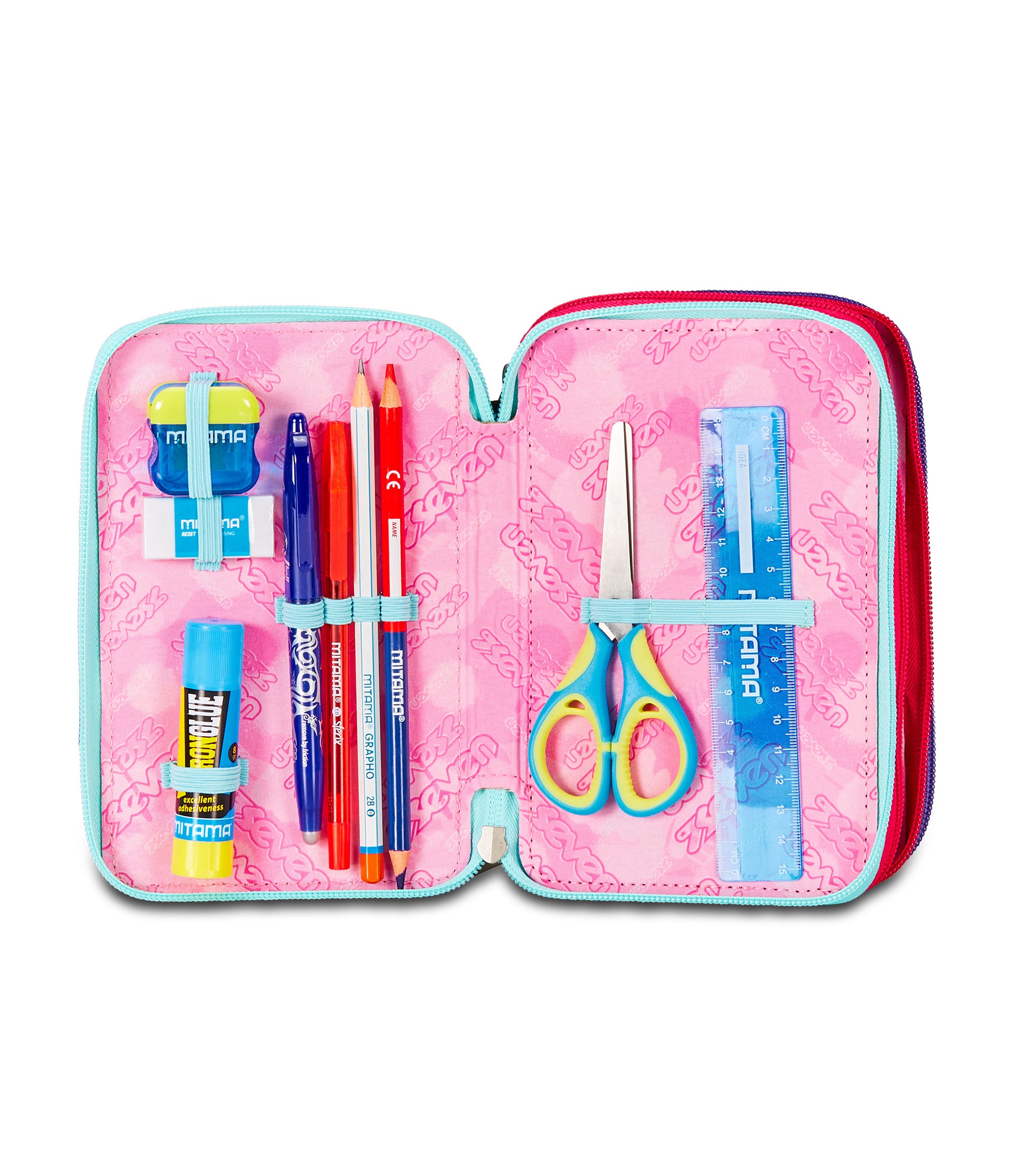 Questo astuccio Seven 3 zip ha tre scomparti in cui troverai tutto il materiale necessario per la tua giornata di scuola. A te non resta altro che abbinarlo a uno zaino o trolley Seven.