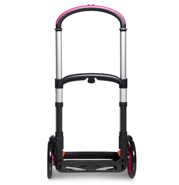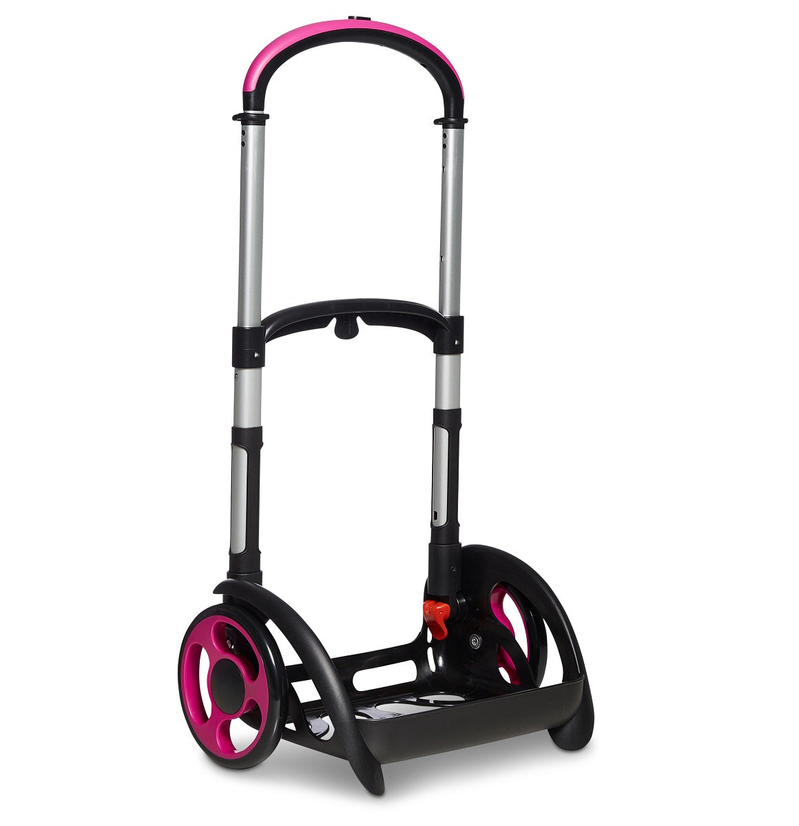 - Maxi maniglia. Maxi ruote da 17 cm. Maxi vaschetta per contenere il fondo dello zaino. Barre allungabili con doppia regolazione in altezza. Pieghevole tramite leve interne laterali. Materiale Polipropilene.