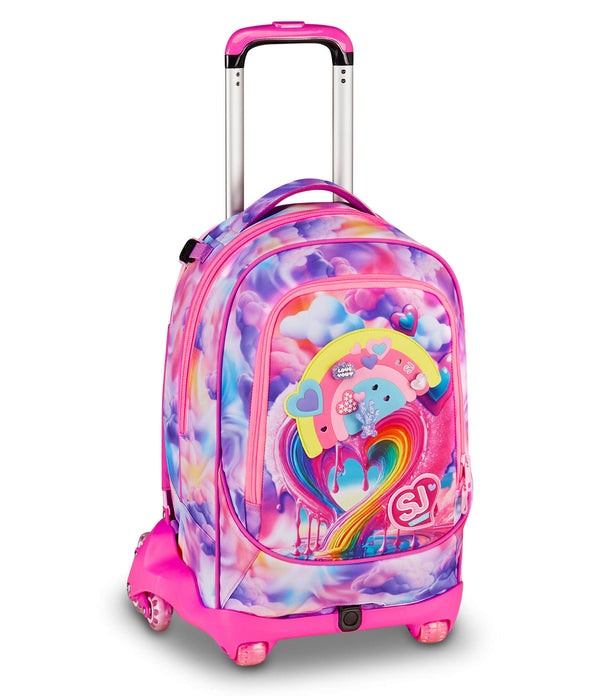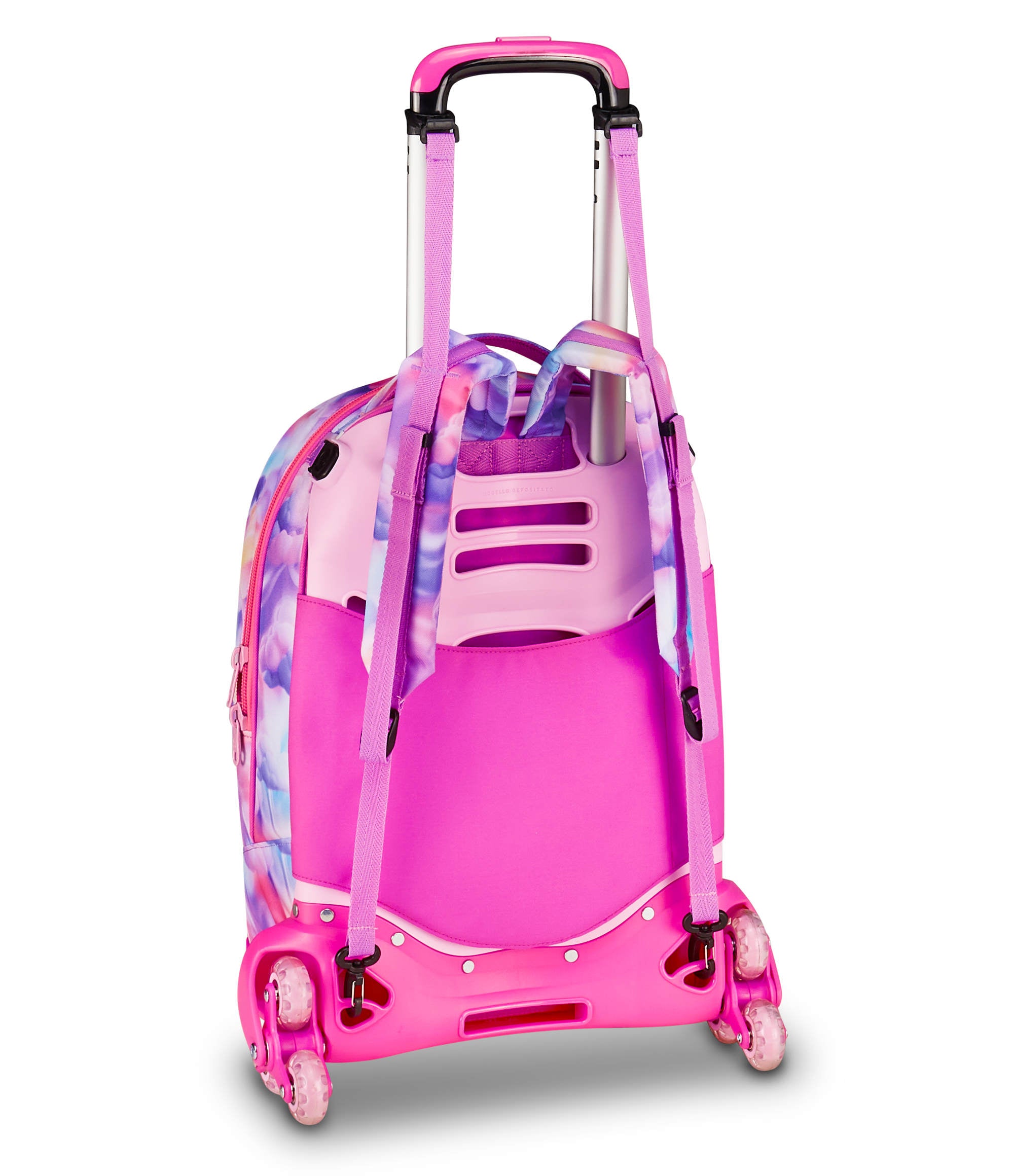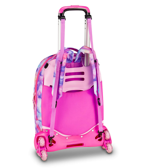 Il Trolley SJ GANG Jack-8WD è uno zaino con carrello sganciabile dotato del nuovo sistema a 8 ruote. Grazie alle 2 ruote anteriori puoi spingerlo senza inclinarlo, rendendo agevoli i piccoli spostamenti in classe o quando sei seduto al banco, mentre le 6 ruote posteriori facilitano la salita dei gradini, affrontandoli sempre con la giusta cautela. Lo zaino, provvisto al suo interno anche di una tasca porta borraccia, è capiente e da riempire con quello che ti serve: libri, quaderni per scuola, o il cambio per l'allenamento. Schienale e spallacci imbottiti inoltre rendono lo zaino comodo da indossare sulle spalle, mentre se lo agganci al carrello dotato di doppia barra telescopica, protezioni angolari e fondo rinforzato è maneggevole, stabile, pratico e sicuro da trascinare come trolley.
