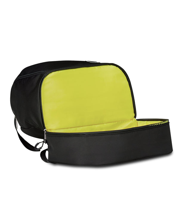 - Taschini frontali con zip verticali e rigido scomparto inferiore perfetto per le scarpe