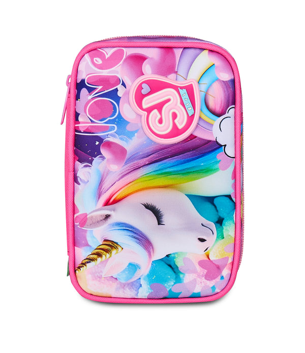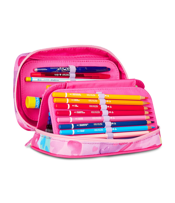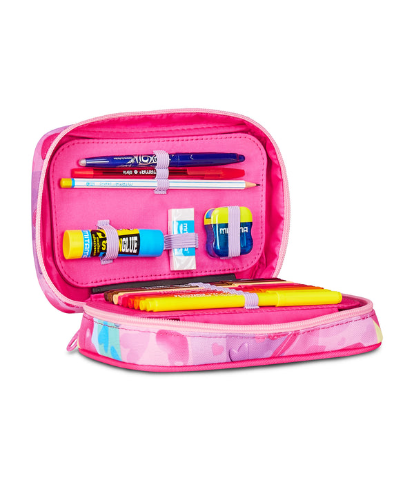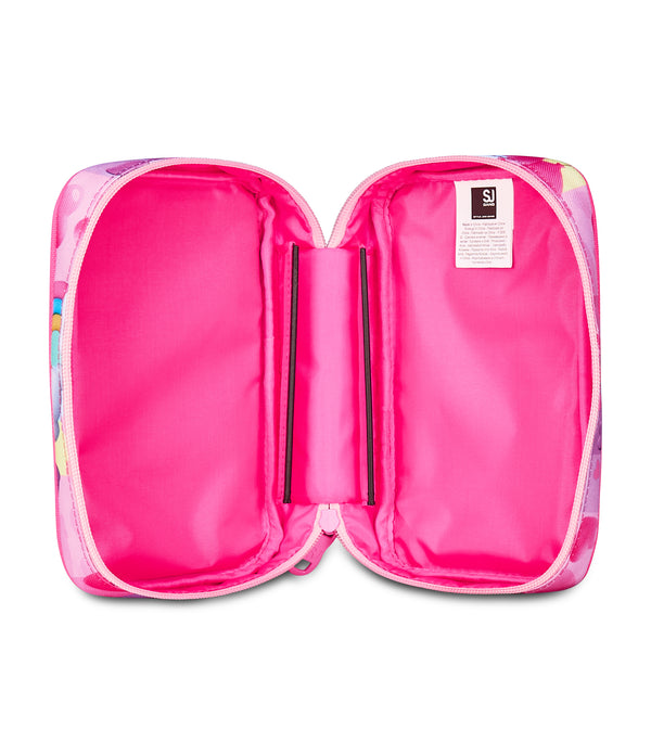 Ciao! Sono l’astuccio Speed Case SJ Gang! Dotato di una comoda apertura tramite un’unica zip e di tutto il materiale necessario per esprimere al meglio la tua fantasia, puoi montarmi e smontarmi a tuo piacere. Infatti, all’interno ho plance removibili con elastici porta penne e matite, che puoi rimuovere del tutto. Così puoi riempirmi come preferisci. Comodo, pratico, versatile e coloratissimo, non ti resta che abbinarmi a uno zaino o a un trolley SJ Gang!