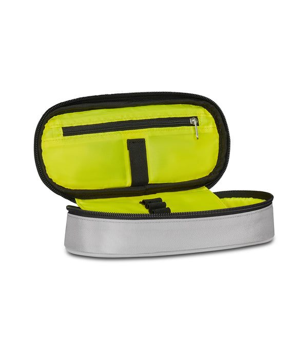 Il portapenne Seven Round Plus Tech, realizzato in tessuto 100% poliestere riciclato, certificato GRS, garantendo tutti gli standard qualitativi dei nostri materiali, al suo interno ha elastici portapenne e un taschino con zip per permetterti di organizzare al meglio tutto il materiale necessario per la tua giornata di scuola. A te non resta altro che abbinarlo a uno zaino o a un trolley Seven.