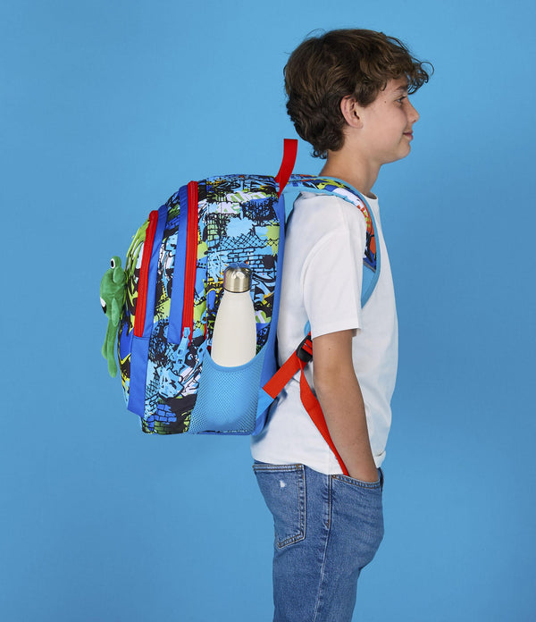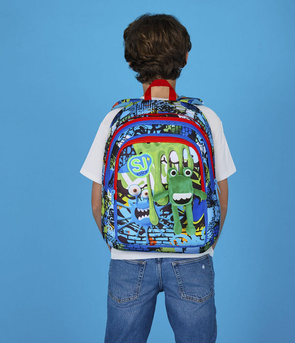 Ciao! Sono il sorprendente zaino Advanced SJ GANG dotato di PELUCHE con OCCHI ALLUNGABILI, pronto ad accompagnarti a scuola in modo divertente e spensierato! Lo schienale e gli spallacci di cui sono dotato mi rendono comodo da indossare sulle spalle, mentre il fondo integrato permette alla mia struttura di rimanere inalterata anche a pieno carico. Nel mio ampio doppio scomparto c’è posto per tutto quello che ti serve durante la giornata e ho anche una tasca laterale dove puoi mettere la tua borraccia.