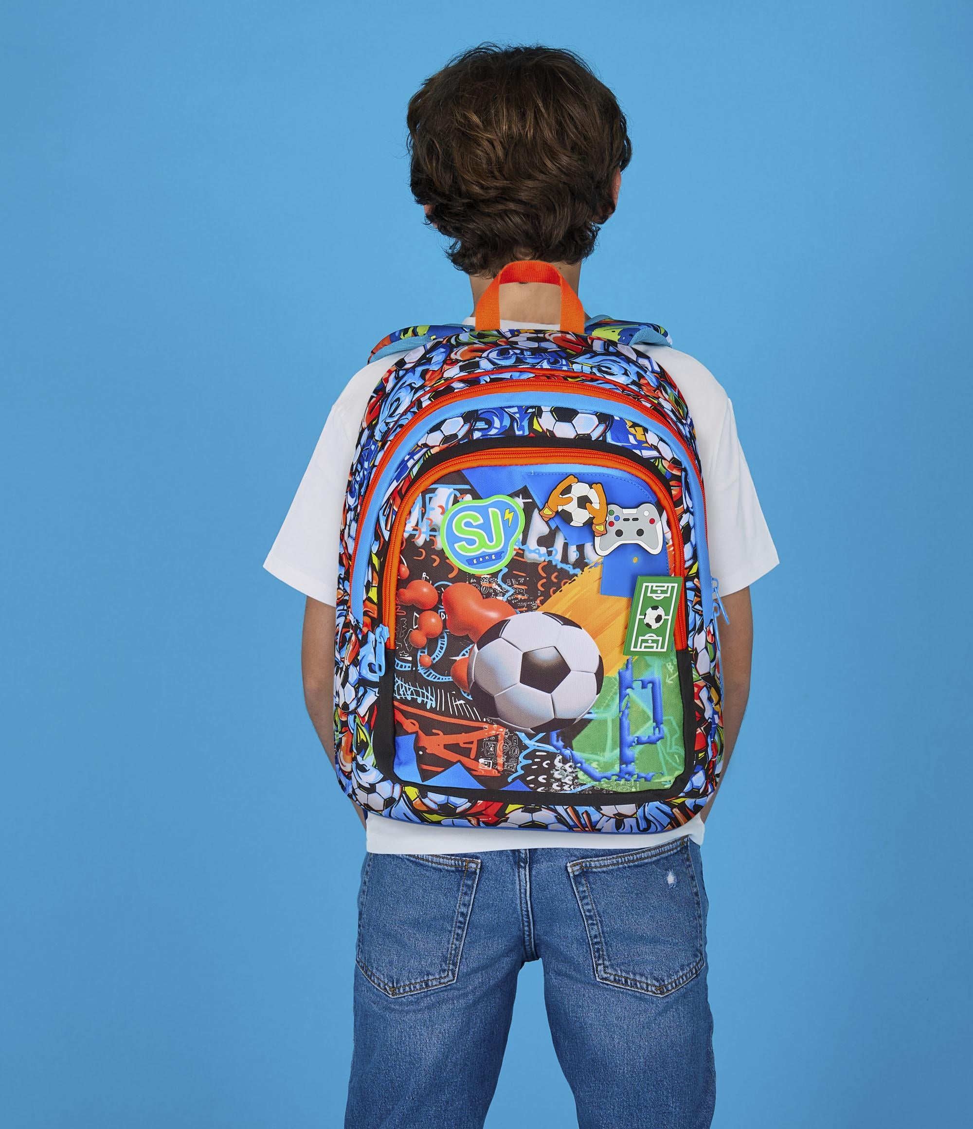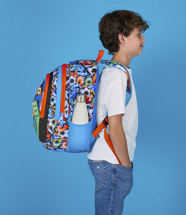 Ciao! Sono il sorprendente zaino Advanced SJ GANG dotato di PINS REMOVIBILI da posizionare come preferisci sulla parte frontale, Pronto ad accompagnarti a scuola in modo divertente e spensierato! Lo schienale e gli spallacci di cui sono dotato mi rendono comodo da indossare sulle spalle, mentre il fondo integrato permette alla mia struttura di rimanere inalterata anche a pieno carico. Nel mio ampio doppio scomparto c’è posto per tutto quello che ti serve durante la giornata e ho anche una tasca laterale dove puoi mettere la tua borraccia.
