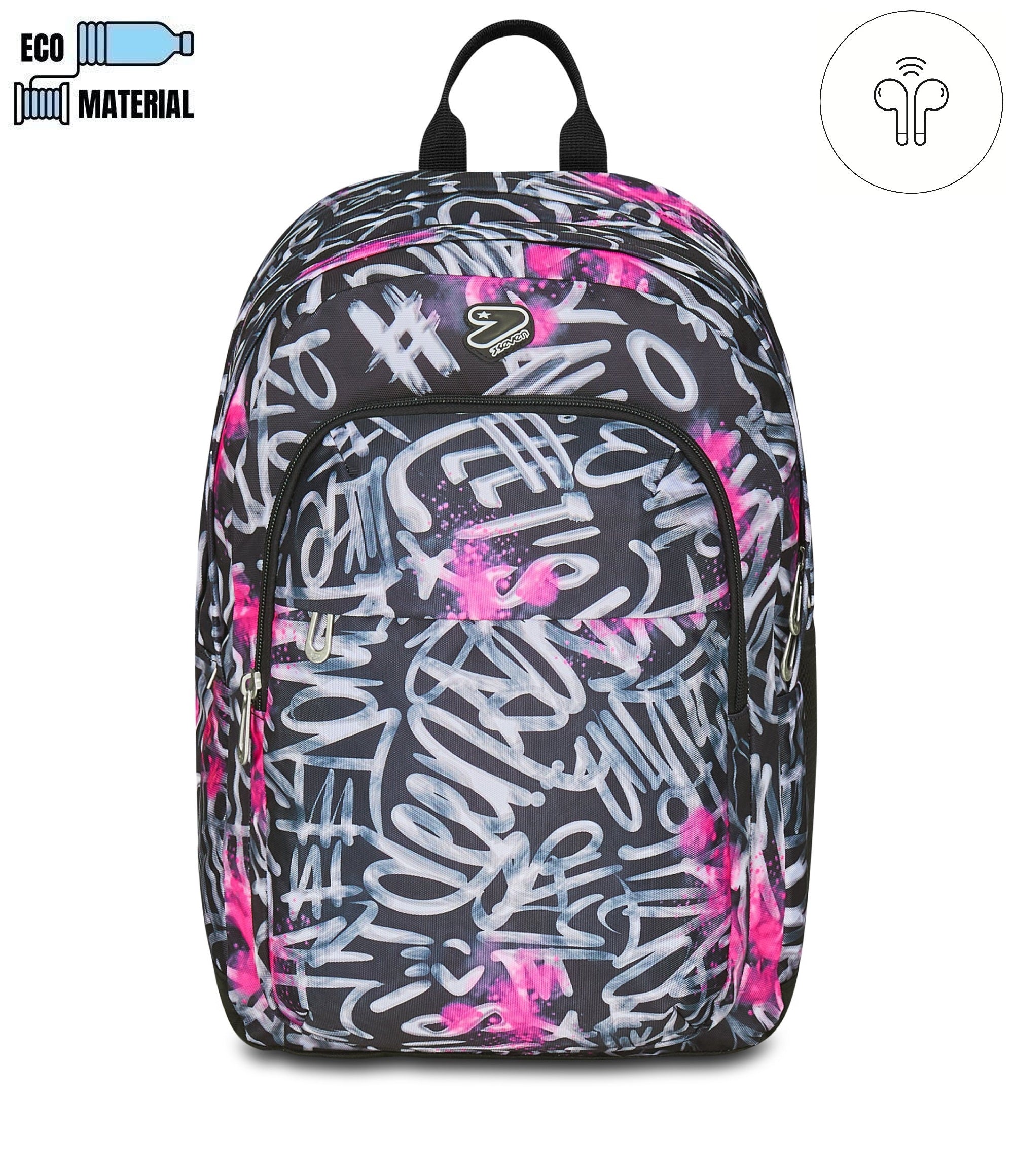 Con il tuo nuovo zaino Seven The Double Pro XXL Reversibile Detach sarà come avere 3 zaini in 1: uno zaino doppio scomparto con parte frontale in fantasia, uno zaino mono scomparto e uno zaino doppio scomparto con parte frontale tinta unita. Versatile, spazioso e dotato anche di EARPHONES WIRELESS CON LUCI LED, al suo interno puoi mettere tutto quello che ti serve per affrontare al massimo la tua giornata, compreso il tuo PC portatile / tablet. Comodo da indossare, è realizzato in tessuto 100% poliestere riciclato, certificato GRS, ricavato da 31 bottiglie in PET da 500 ml ciascuna, rispettando tutti gli standard qualitativi dei nostri materiali.