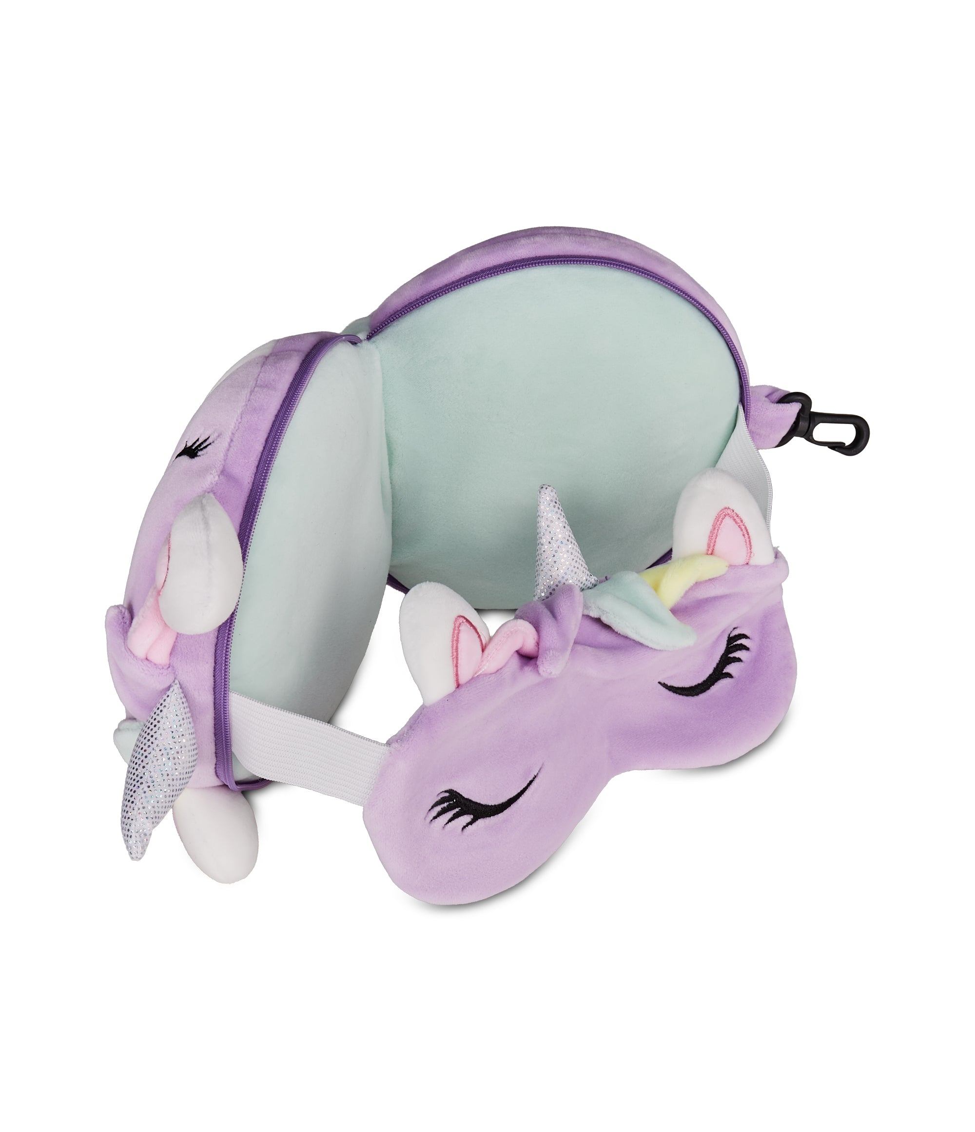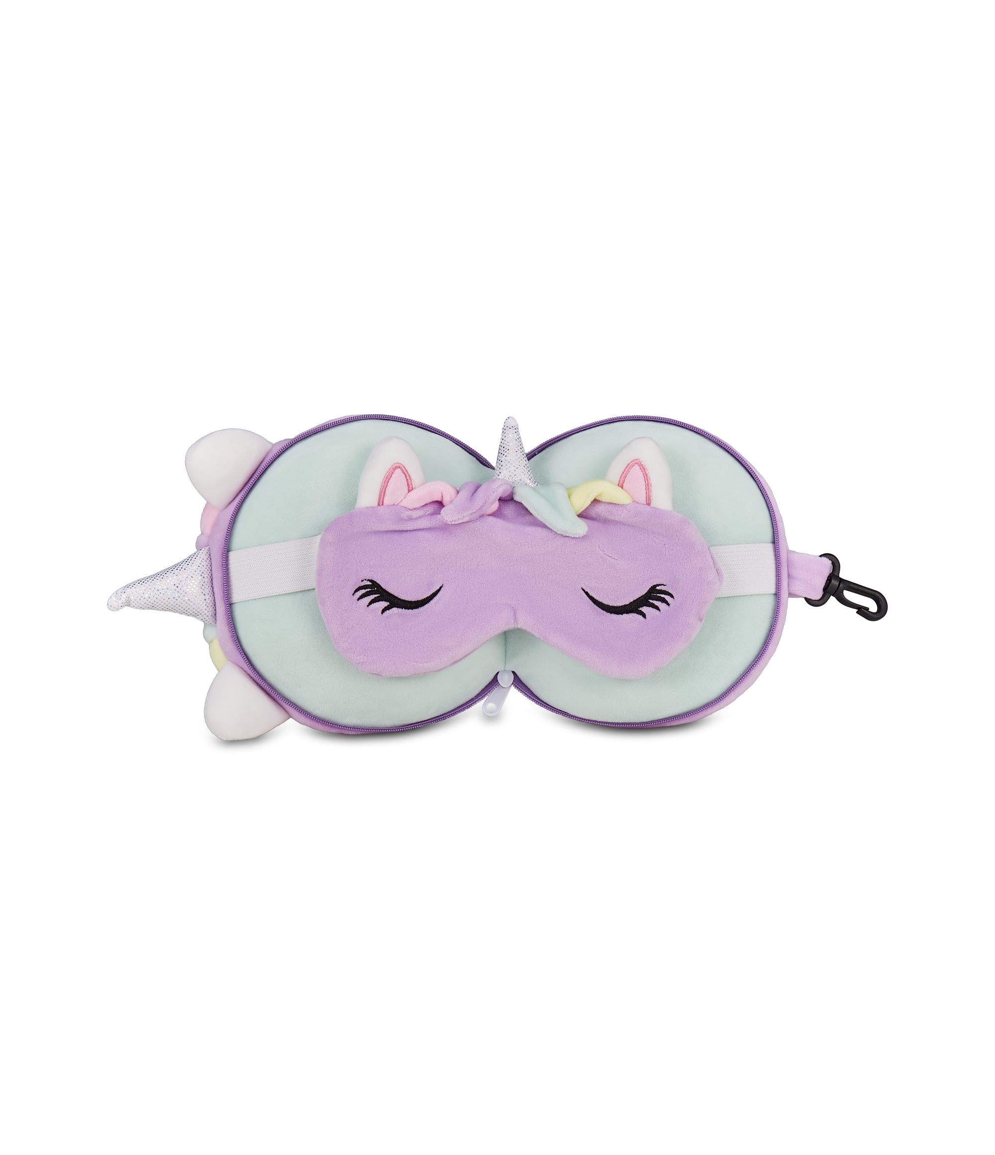- Unicorn travel pillow with sleep mask. Adorable unicorn-shaped travel pillow with a soft sleep mask, perfect for adding a touch of magic to your trips.