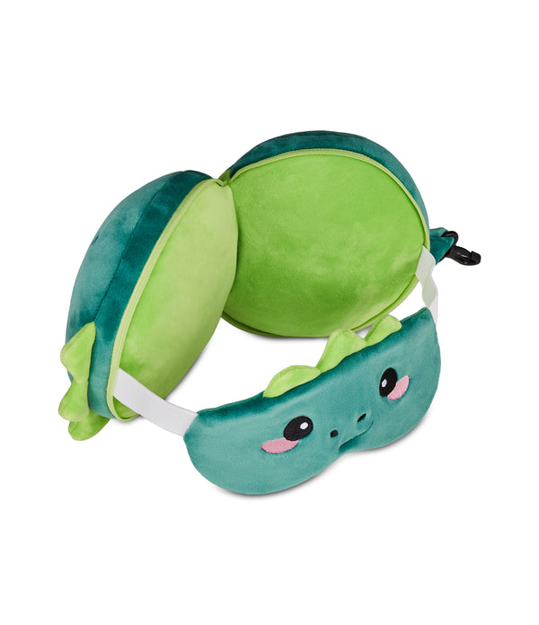 - Dinosaur travel pillow with sleep mask. Playful dinosaur travel pillow that provides great neck support and comes with a matching sleep mask for relaxing journeys.
