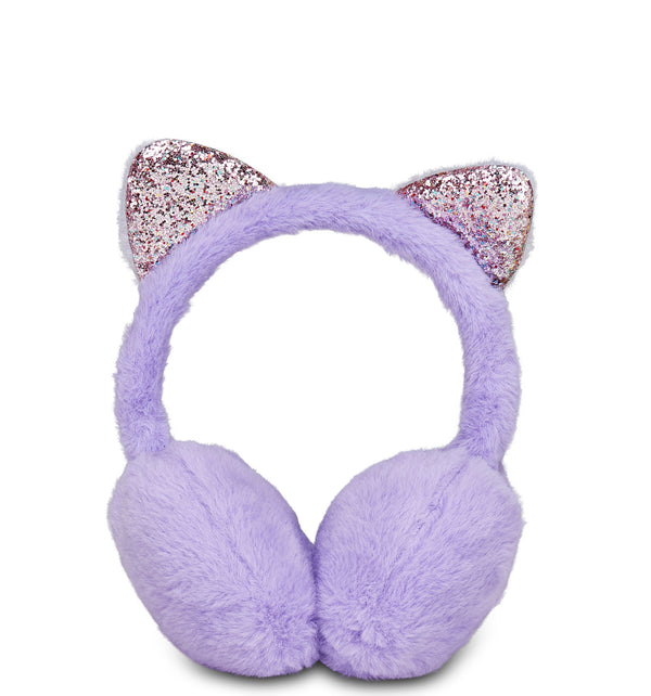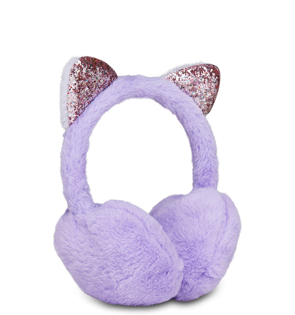Soft kitten ear muffs for girls with iridescent details. Adjustable and made with faux fur.