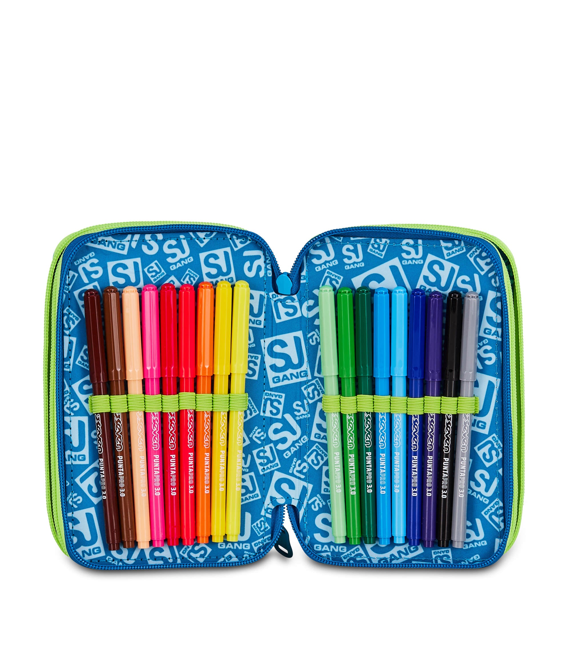 Hello! I’m the colourful 3 Zip SJ GANG Pencil Case. Equipped with three compartments fully stocked with all the supplies you need to do your best in school activities, you can match me with an SJ Gang backpack or trolley!