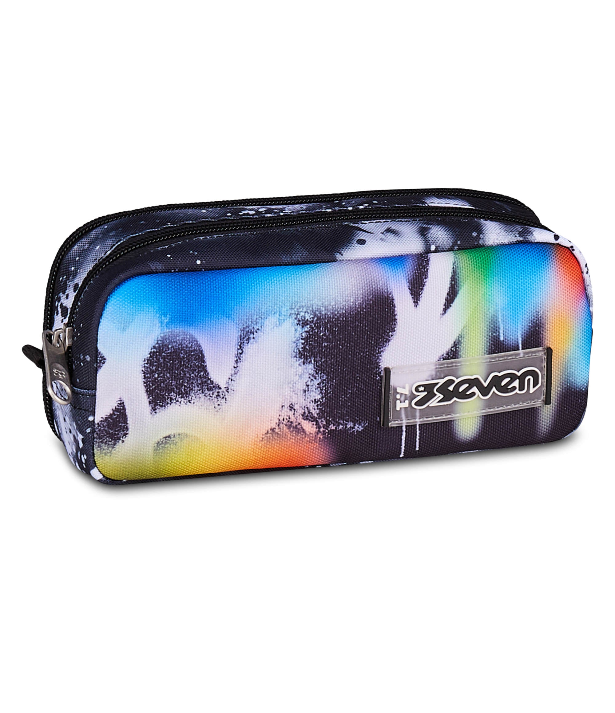 Before leaving home, make sure the Seven double-compartment pencil case is in your backpack. It offers plenty of space for everything you need, thanks to the organizer compartment, elastic pen holders, and two small pockets that keep your school essentials neatly arranged.