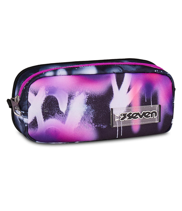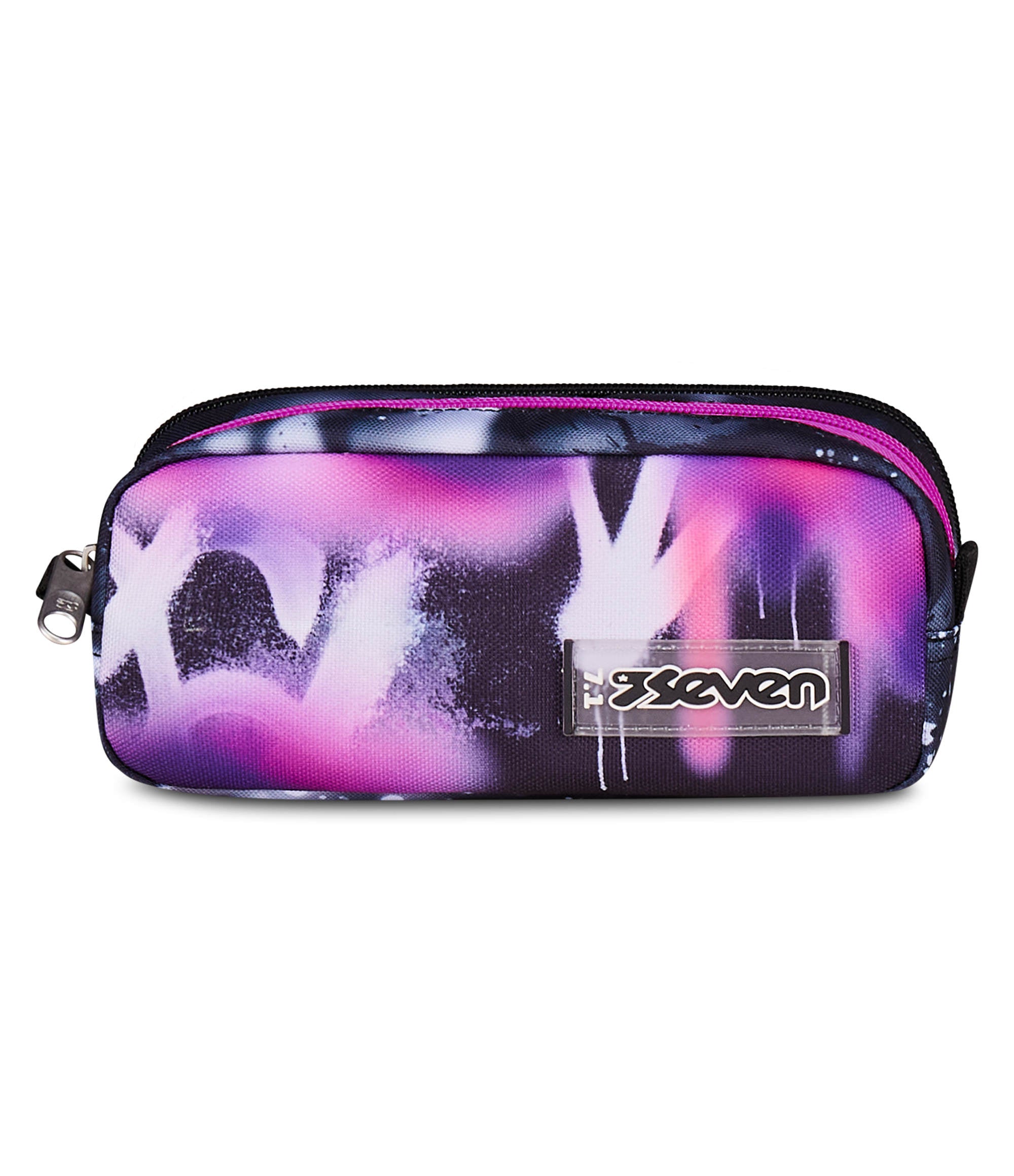 Before leaving home, make sure the Seven double-compartment pencil case is in your backpack. It offers plenty of space for everything you need, thanks to the organizer compartment, elastic pen holders, and two small pockets that keep your school essentials neatly arranged.