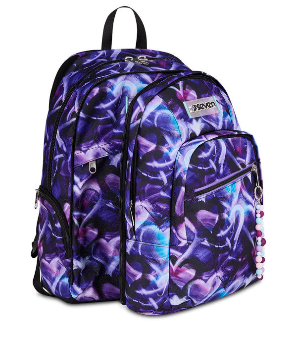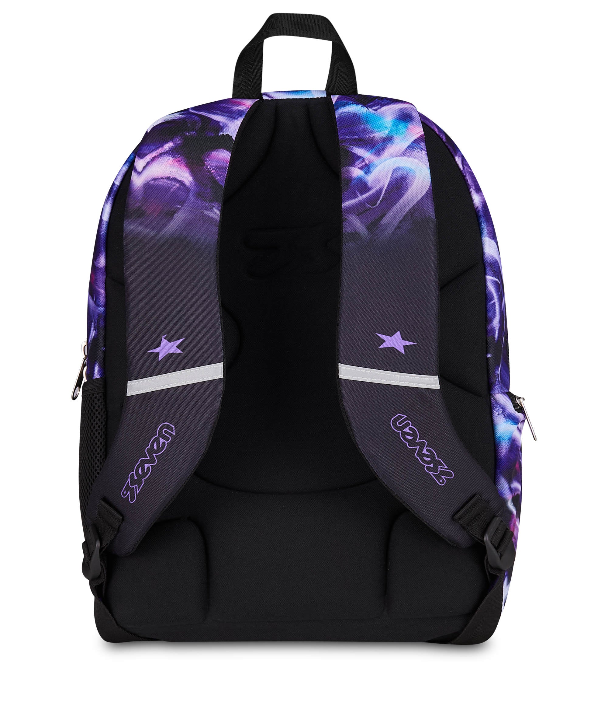 Seven Dual Detach is a versatile backpack with a spacious double compartment that converts into a smaller daypack by detaching the front compartment with a zip. It features dedicated space for books, a laptop or tablet, a water bottle, and clothes, plus a front organizer pocket for small essentials. Padded shoulder straps, a padded back panel, and an integrated base ensure comfort and balanced carrying throughout the day.