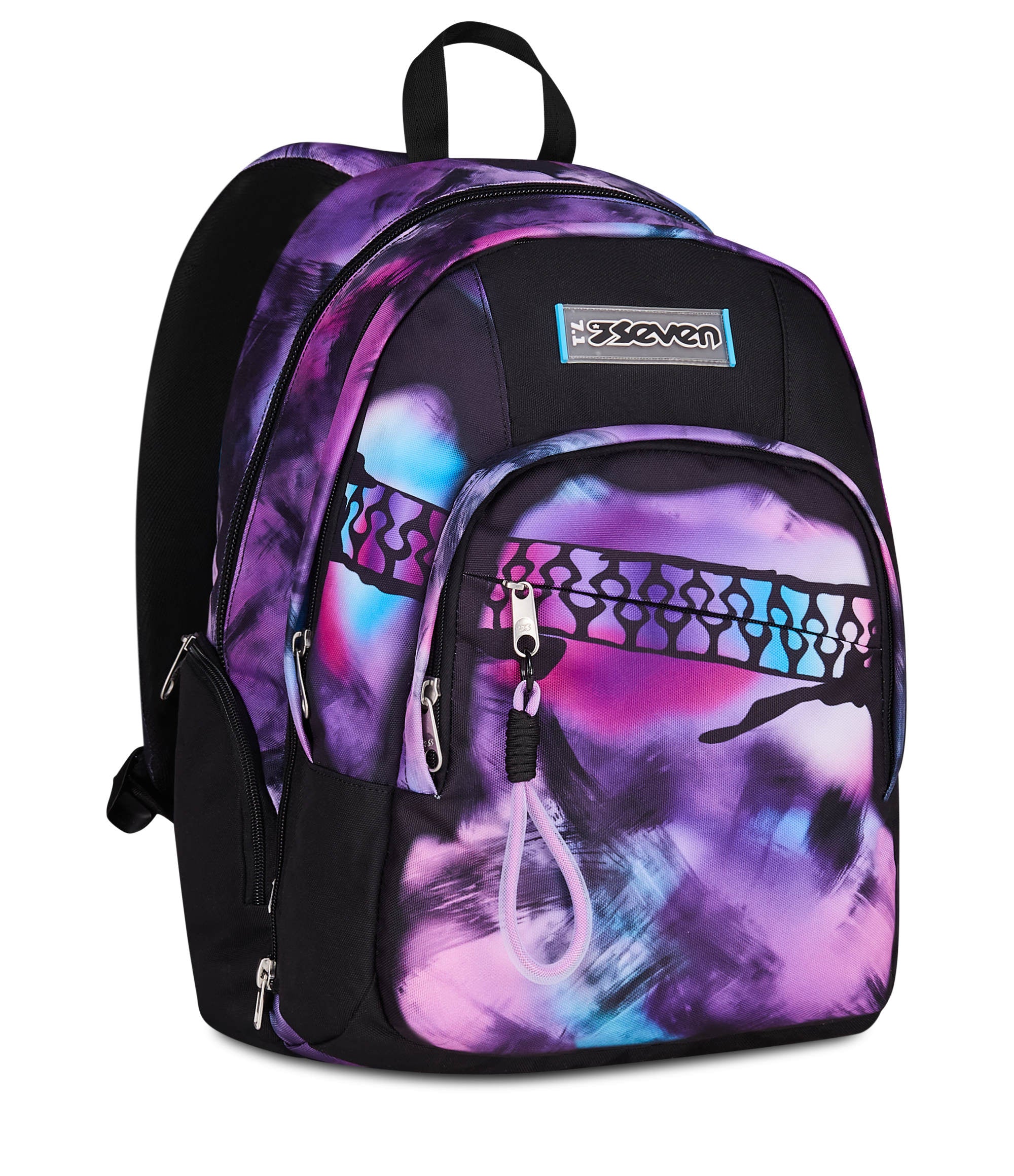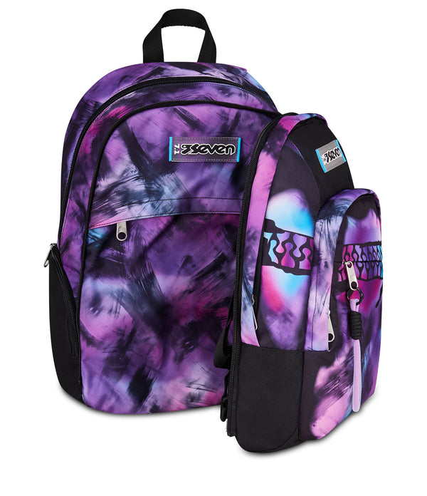 Seven Dual Detach is a versatile backpack with a spacious double compartment that converts into a smaller daypack by detaching the front compartment with a zip. It features dedicated space for books, a laptop or tablet, a water bottle, and clothes, plus a front organizer pocket for small essentials. Padded shoulder straps, a padded back panel, and an integrated base ensure comfort and balanced carrying throughout the day.