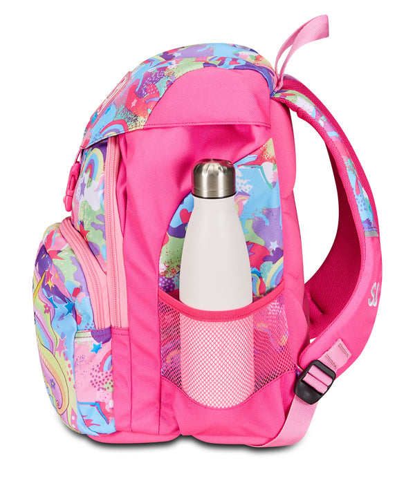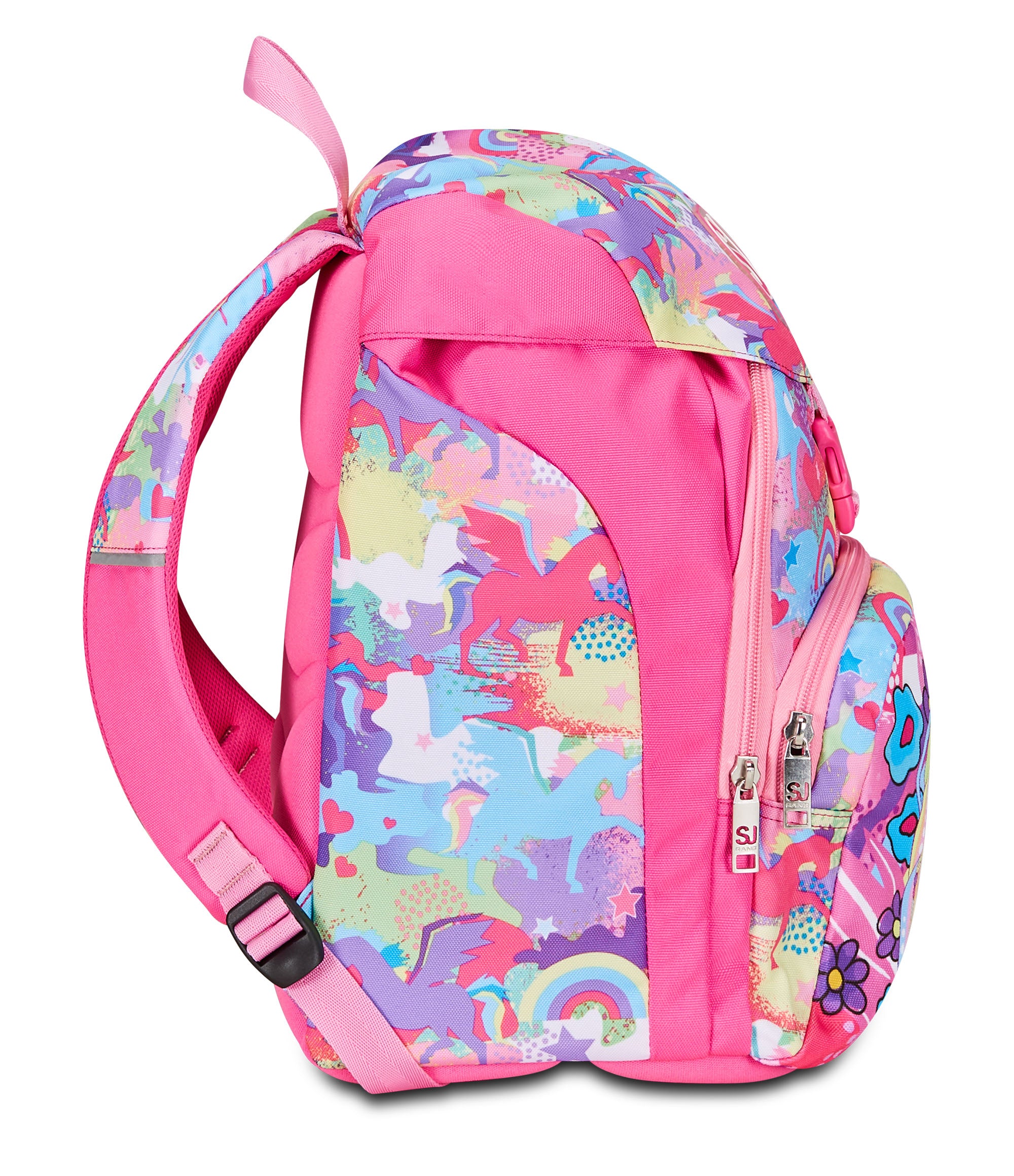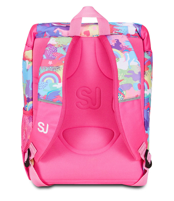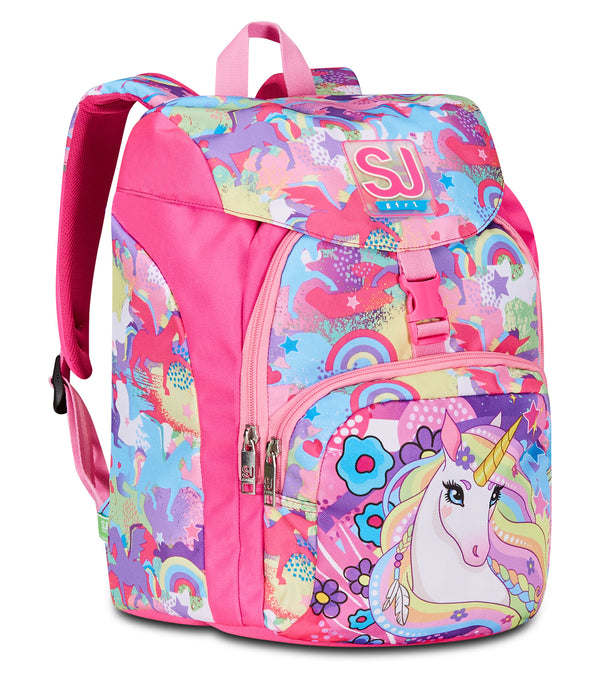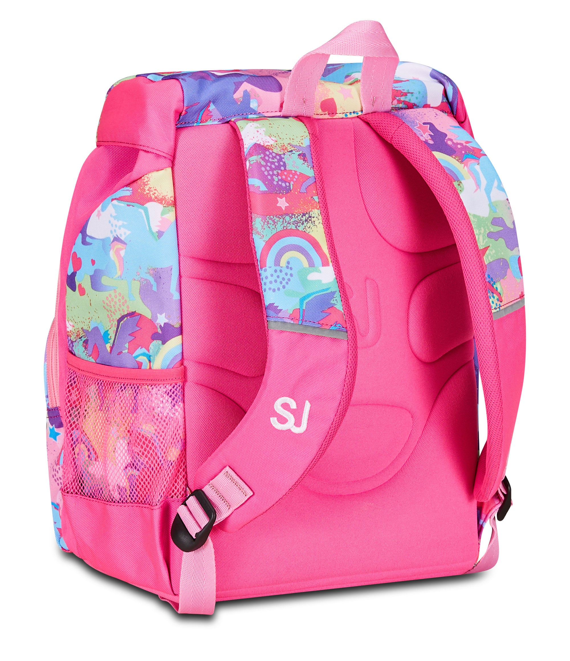 Hello! I am the new backpack PRIMINO UNIBRAID SJ Gang! I was designed to accompany you to school in a colorful, comfortable and fun! When you put me on, you’ll have maximum freedom of movement thanks to my structure. I also have practical pockets, such as the one for the bottle, and thanks to the integrated bottom the load is always well balanced.