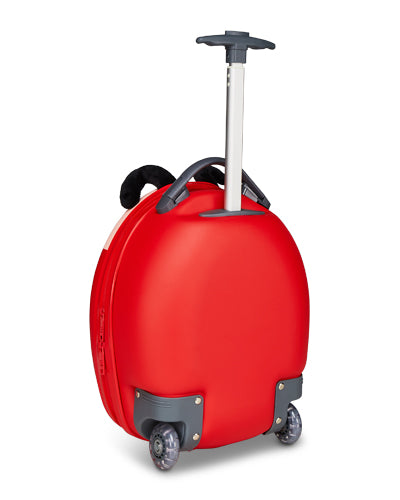 - Animal-shaped trolley with a single extendable handle featuring two height adjustments. Equipped with 60 mm wheels and a front anti-tip foot. The main compartment has a zip closure and internal elastic straps to keep belongings secure.