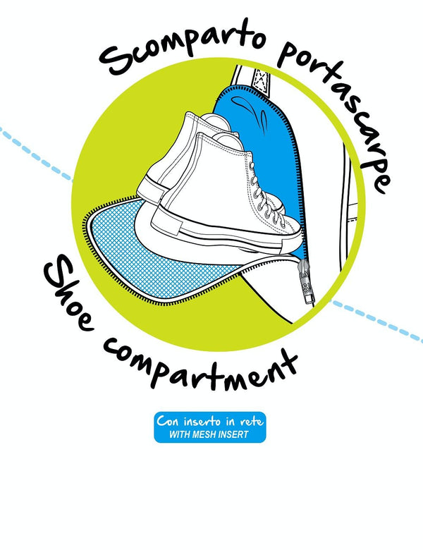 Front pocket. Bottom shoe compartment.