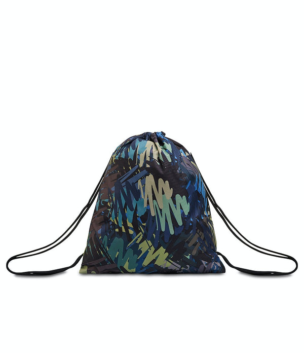 - Single compartment sakky bag with drawstring closure