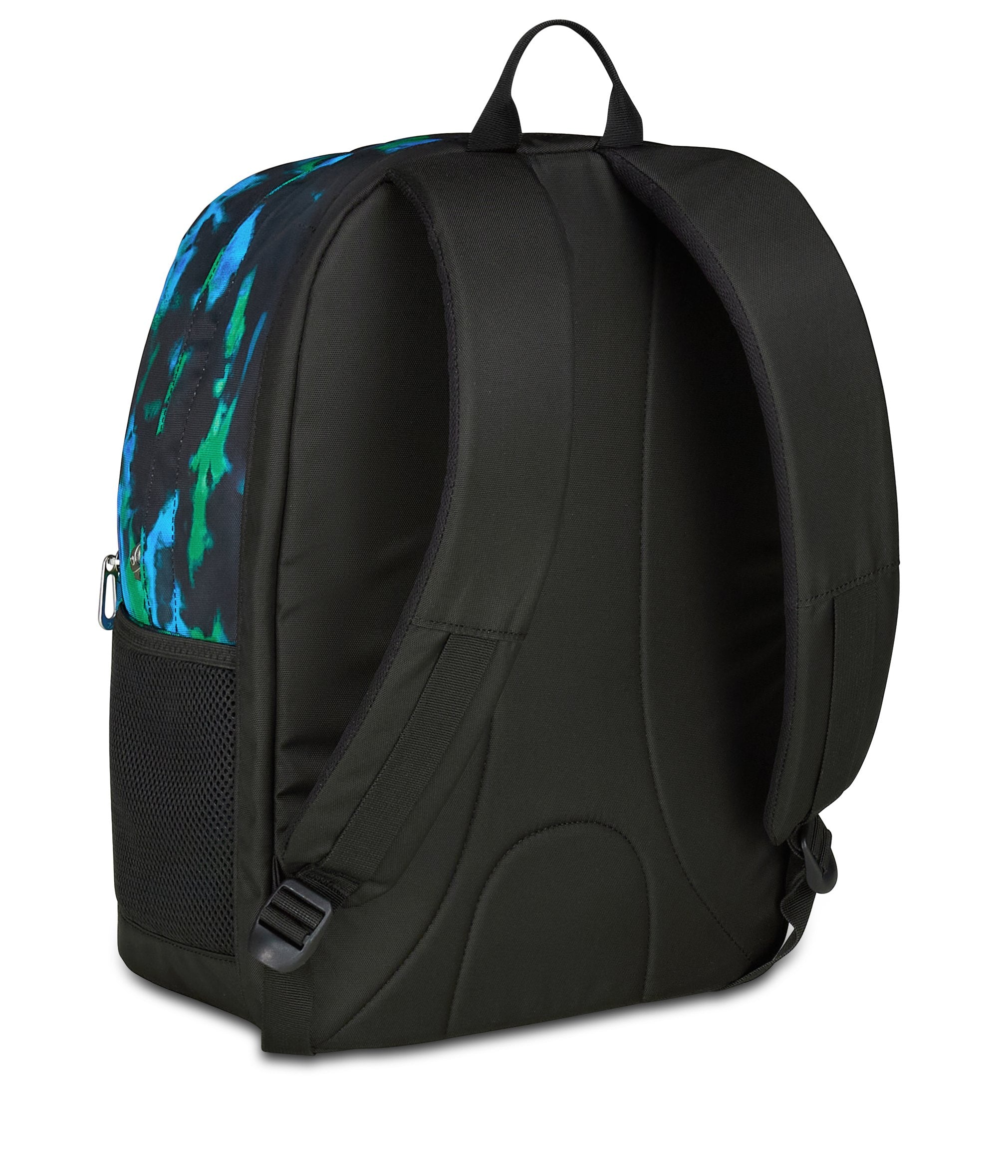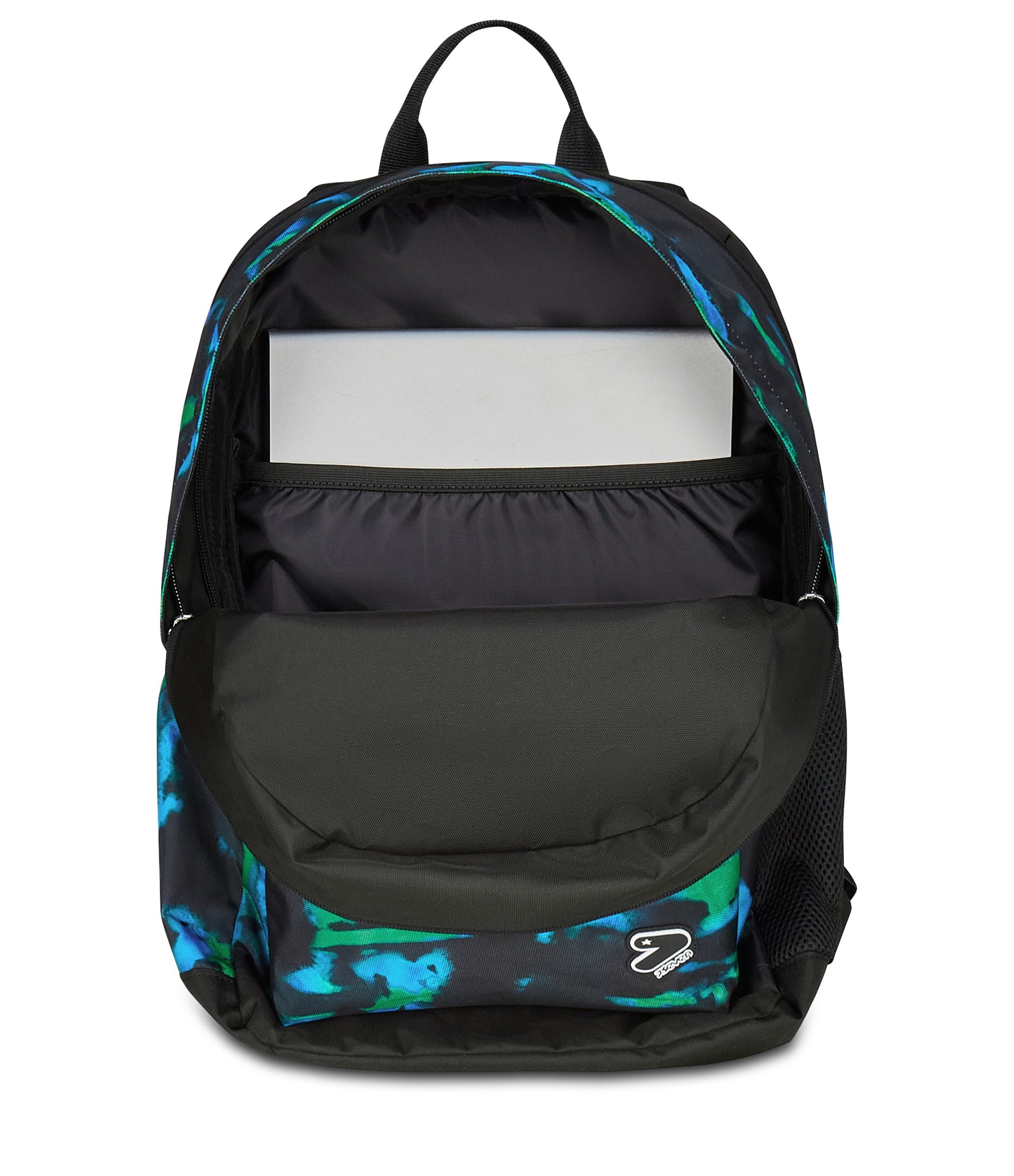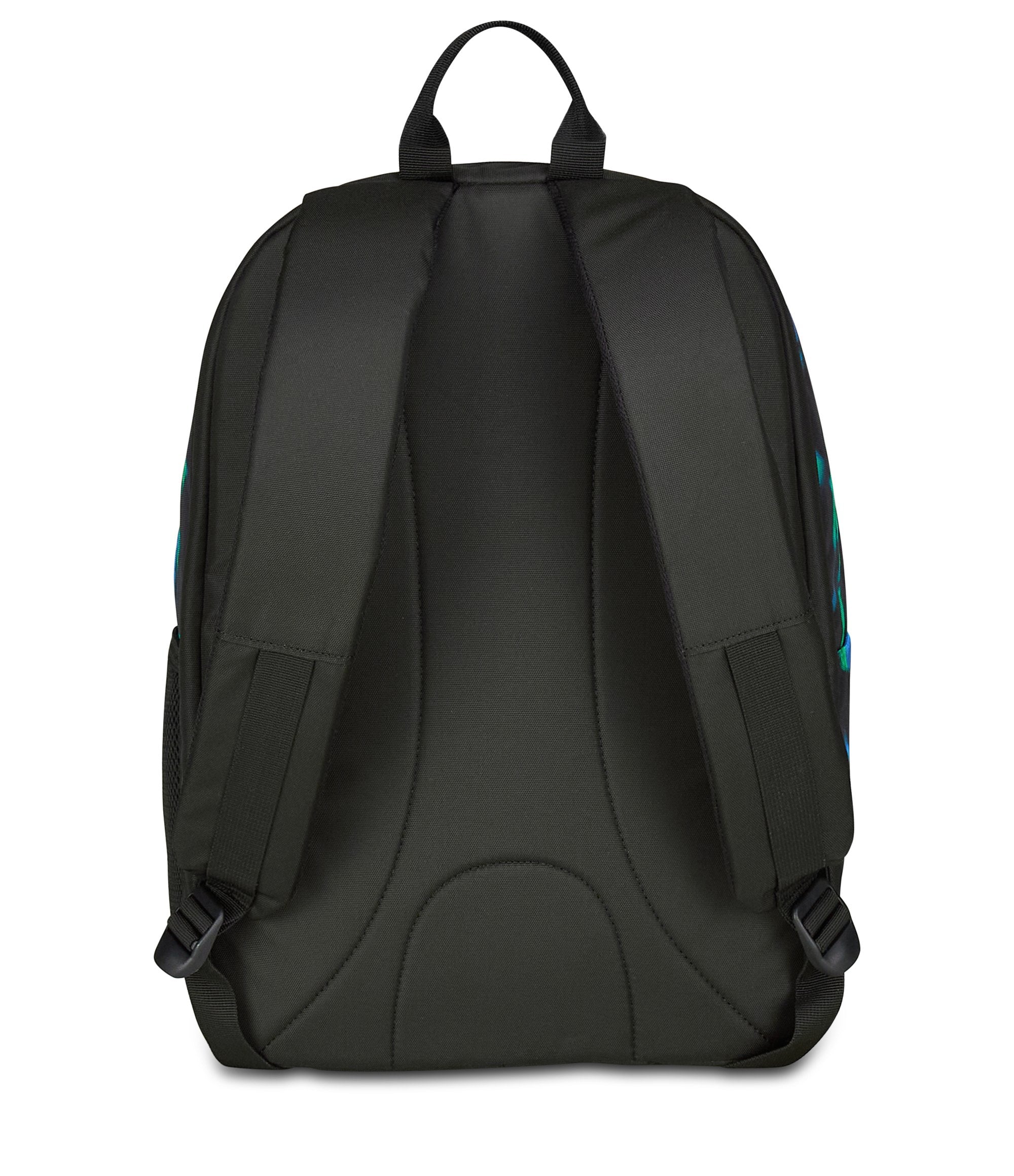 - Reversible backpack with matching wireless earphones and markers to customize it. One side allover print, one side solid colour