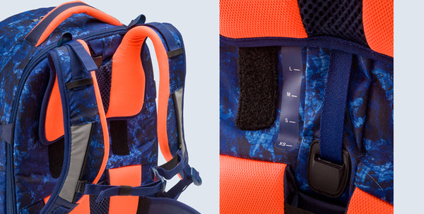 Lo stesso sistema che abbiamo introdotto nella nostra linea dedicata ai ragazzi, che include schienale preformato, spallacci regolabili e cinghie laterali che consentono di ripartire il carico, spostando il peso dalle spalle alla più robusta zona lombare. Così, è lo zaino ad adattarsi alle caratteristiche fisiche di chi lo indossa.