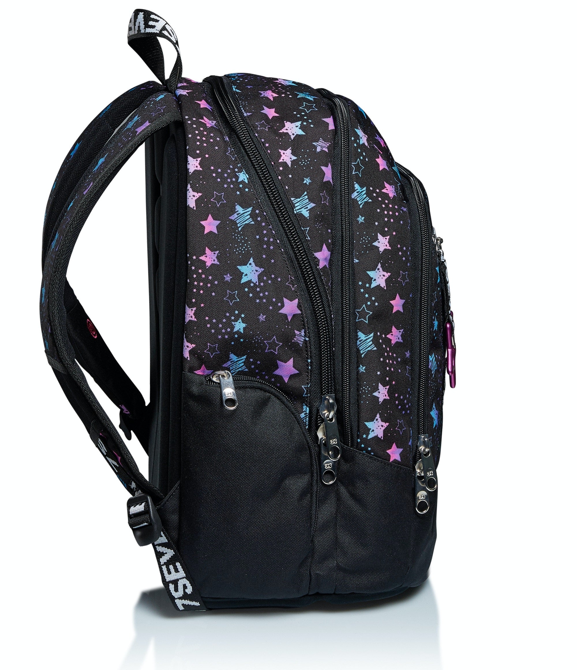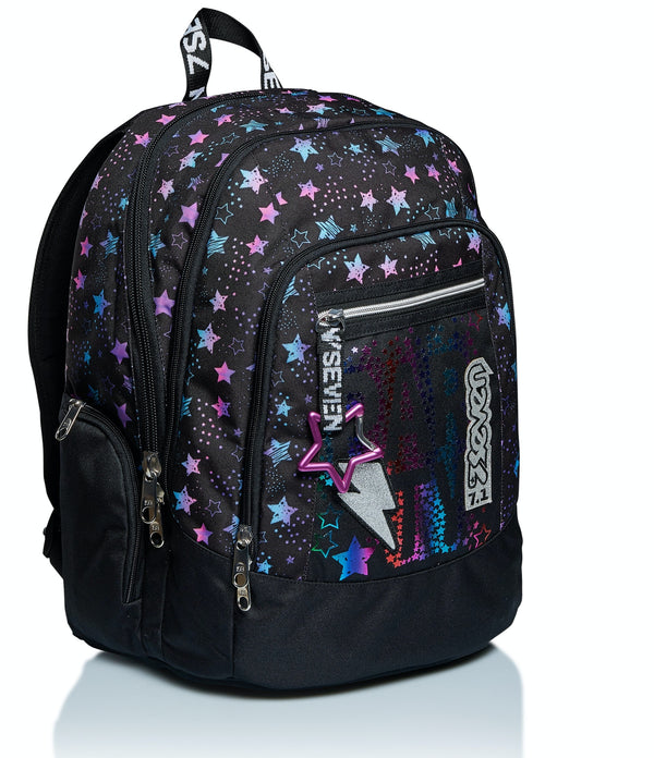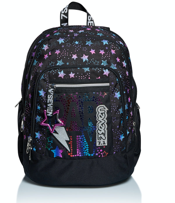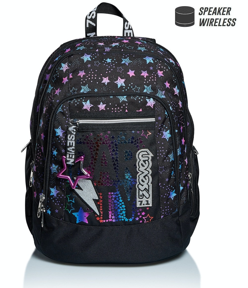 Con l’effetto metallizzato sfumato della sua stampa e il logo glitterato, Dance Party ha uno stile alla moda, unico e inconfondibile. Dotato di moschettone staccabile, è ideale per affrontare le tue giornate piene di impegni. Nell’ampio doppio scomparto con apertura facilitata tramite zip distribuisci ottimamente il carico sfruttando anche le tasche laterali e quella frontale con organizer. Ha inoltre una tasca per tablet o PC e con lo SPEAKER WIRELESS ovunque tu sia puoi ascoltare la tua playlist. Lo schienale Ergosystem preformato con fondo integrato e gli spallacci imbottiti e traspiranti lo rendono leggero e confortevole da indossare anche quando è davvero pieno, proteggendoti la schiena.