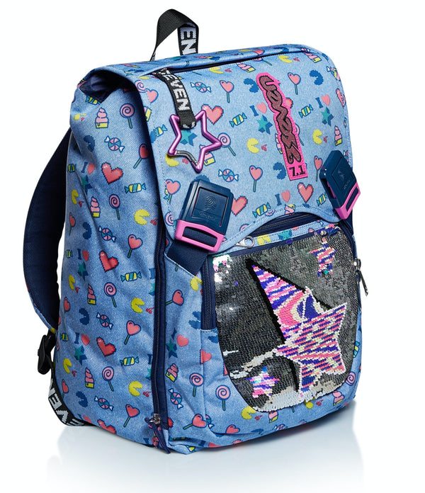 -30%Lo zaino estensibile Seven New Design Starry Rainbow ha un look cool e alla moda che puoi cambiare grazie alle paillettes reversibili. E poi ha tanto spazio che puoi moltiplicare con la zip laterale quando il carico si fa pesante. In più ha un’ampia tasca frontale e le fibbie a sgancio rapido per il massimo della praticità. Dotato anche di moschettone staccabile, è ideale per affrontare le tue giornate piene di impegni. Lo schienale Ergosystem preformato con fondo integrato e gli spallacci imbottiti e traspiranti lo rendono leggero e confortevole da indossare anche quando è davvero pieno, proteggendoti la schiena. E con gli inserti rifrangenti sarai più visibile per la tua sicurezza.