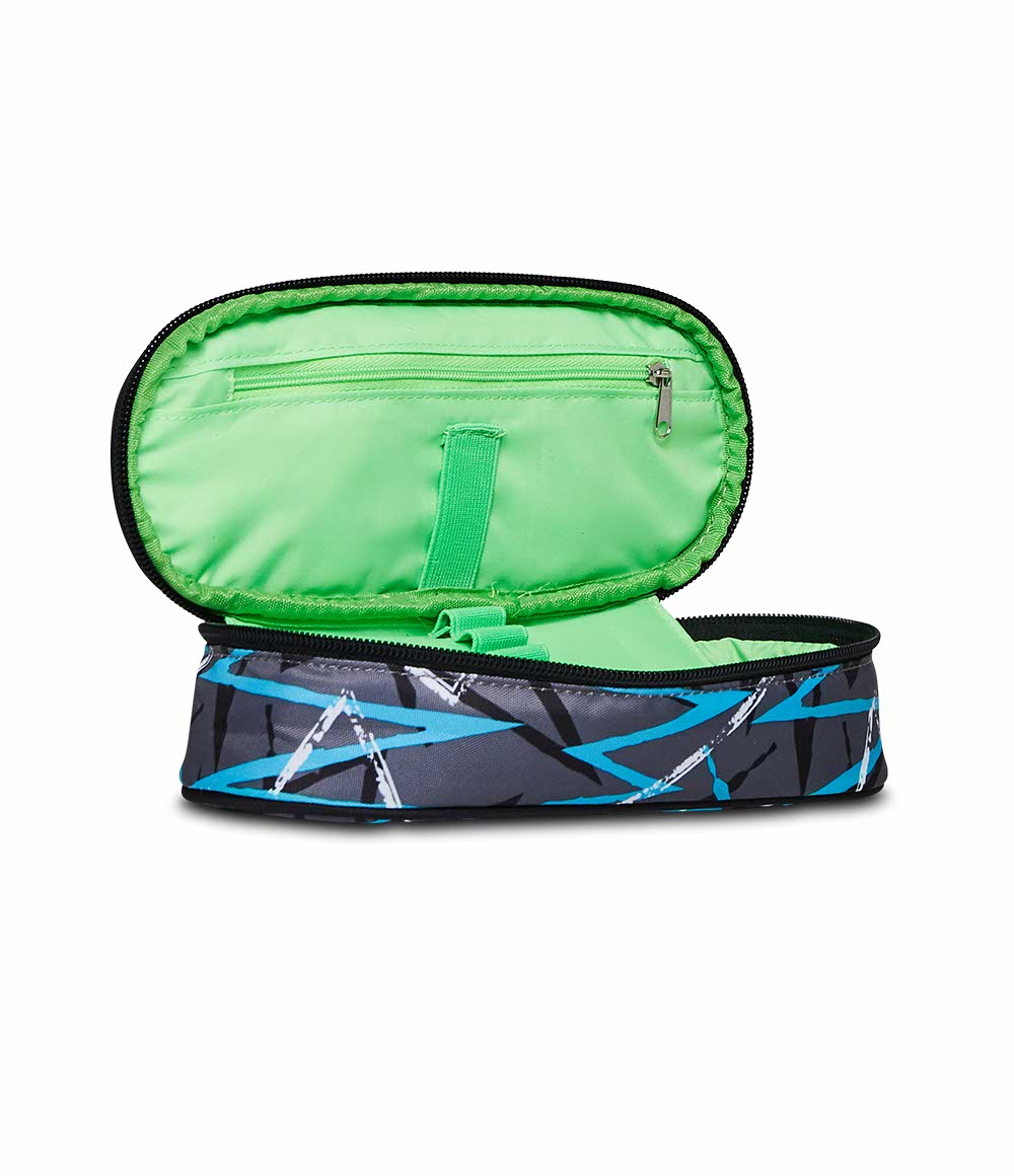 Ciao! Sono il portapenne Round Plus SJ Gang! Grazie ai miei pratici elastici portapenne e al mio prezioso taschino interno con zip, potrai disporre sempre con cura e ordine tutto il materiale che ti serve per svolgere al meglio i tuoi lavori a scuola e averlo sempre a portata di mano! Le mie grafiche sono coloratissime e sono realizzato in tessuto 100% poliestere riciclato, certificato GRS, ricavato da 7,8 bottiglie in PET da 500 ml ciascuna, rispettando tutti gli standard qualitativi dei nostri materiali, non ti resta che abbinarmi a uno zaino SJ Gang! Abbinami a uno zaino o a un trolley SJ Gang!