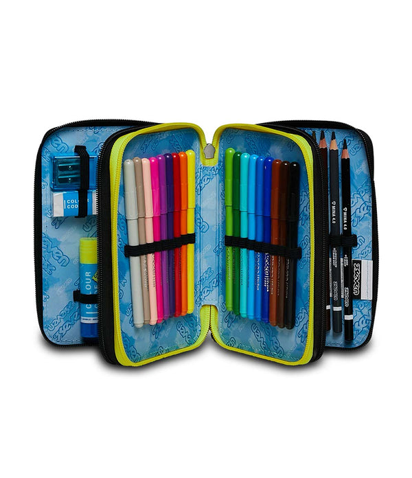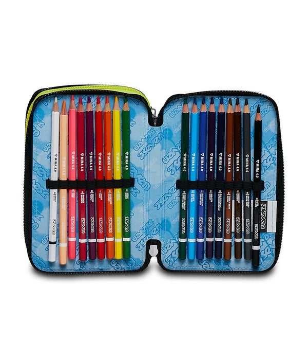 L’astuccio Seven 3 zip ha tre scomparti in cui troverai tutto il materiale necessario per la tua giornata di scuola. A te non resta altro che abbinarlo a uno zaino o a un trolley Seven.