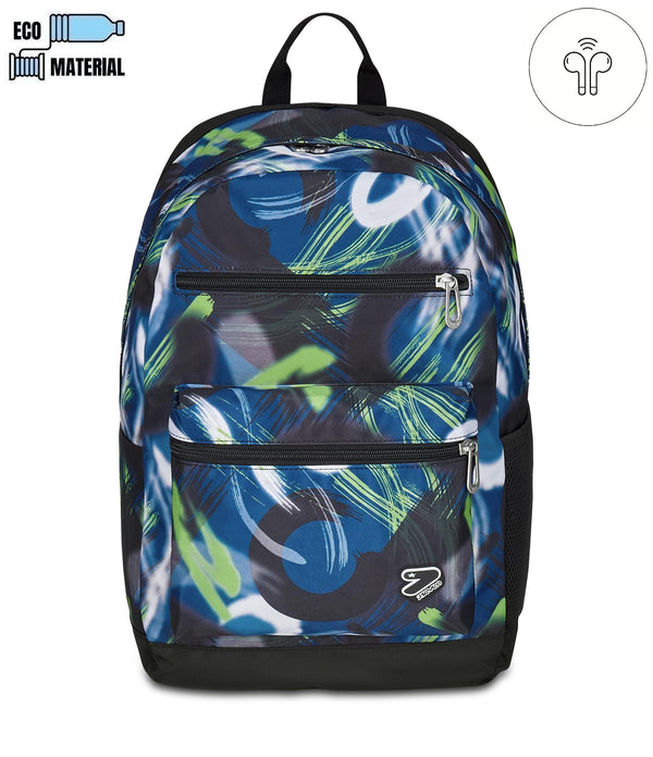 - Zaino Reversibile con earphones wireless abbinati e markers per personalizzare lo zaino. Un lato stampa allover, un lato tinta unita
